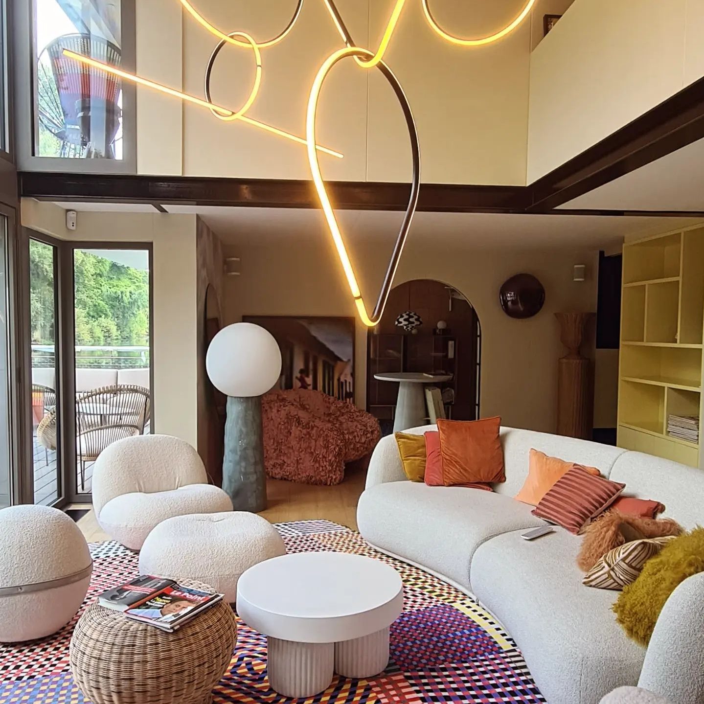 In questo insolito progetto di casa galleggiante, la nostra sfida è stata quella di creare uno spazio in cui ogni volume trasudasse audacia, pur mantenendo una perfetta armonia con l’ambiente. Combinando pezzi all’avanguardia come lo sgabello Bold di Moustache e la lampada a sospensione FlowerPot di &Tradition, siamo riusciti a combinare singolarità e comfort, per un’immersione unica in questo habitat straordinario.