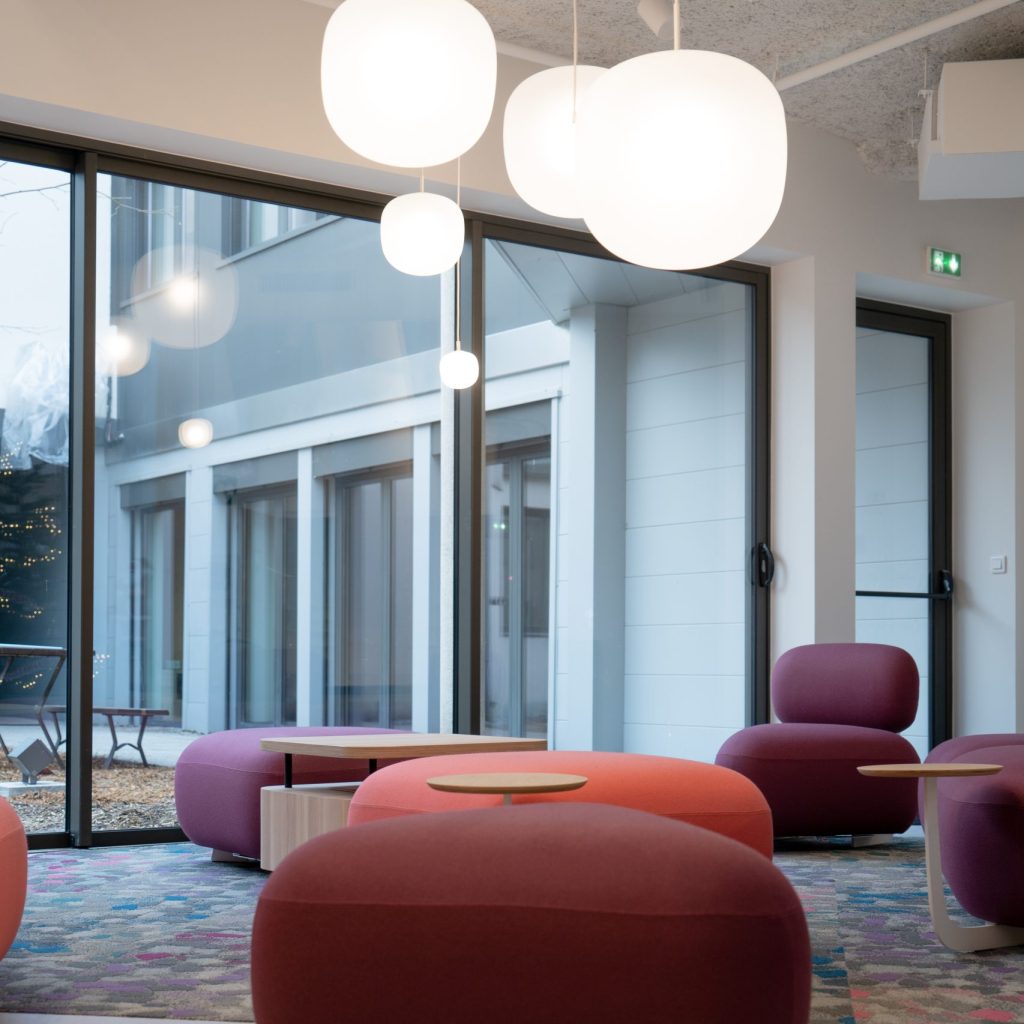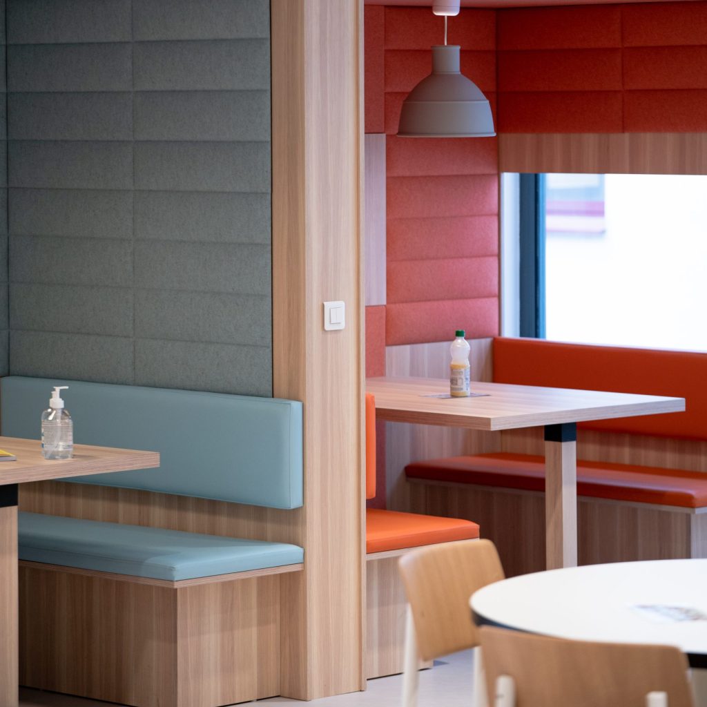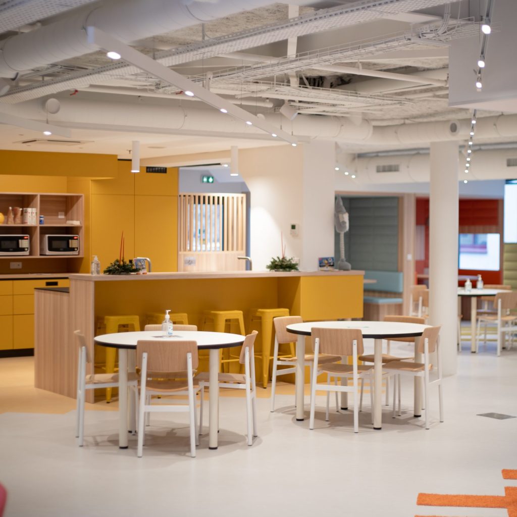 Il nostro team ha contribuito a ridefinire le aree comuni della sede centrale di Maped con un approccio moderno e funzionale. Incorporando toni pastello ed elementi di design giocosi, come divani e altalene, abbiamo creato un ambiente favorevole al relax e alla collaborazione. Il Forum, uno spazio multifunzionale, combina aree di ristorazione, coworking e aree connesse, segnando l “inizio di un” ambiziosa trasformazione degli spazi di lavoro di Maped.