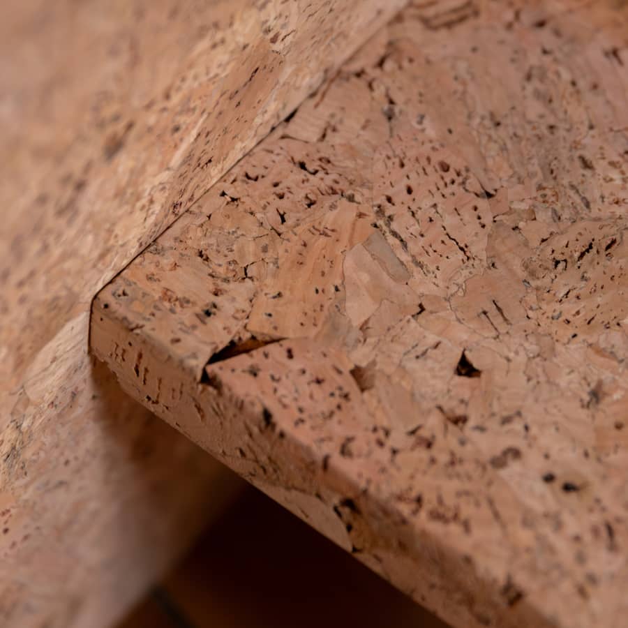 Il sughero è composto per oltre il 50% da aria, il che lo rende estremamente leggero. La sua elasticità e comprimibilità gli permettono di adattarsi alle variazioni di temperatura senza perdere volume. Impermeabile ai liquidi, è anche ipoallergenico, antistatico e non assorbe né polvere né odori. Offre inoltre un eccellente isolamento acustico, resiste all’attrito e agisce come ritardante di fiamma. Infine, la sua sensazione naturalmente piacevole al tatto lo rende un materiale ideale per un tavolo.