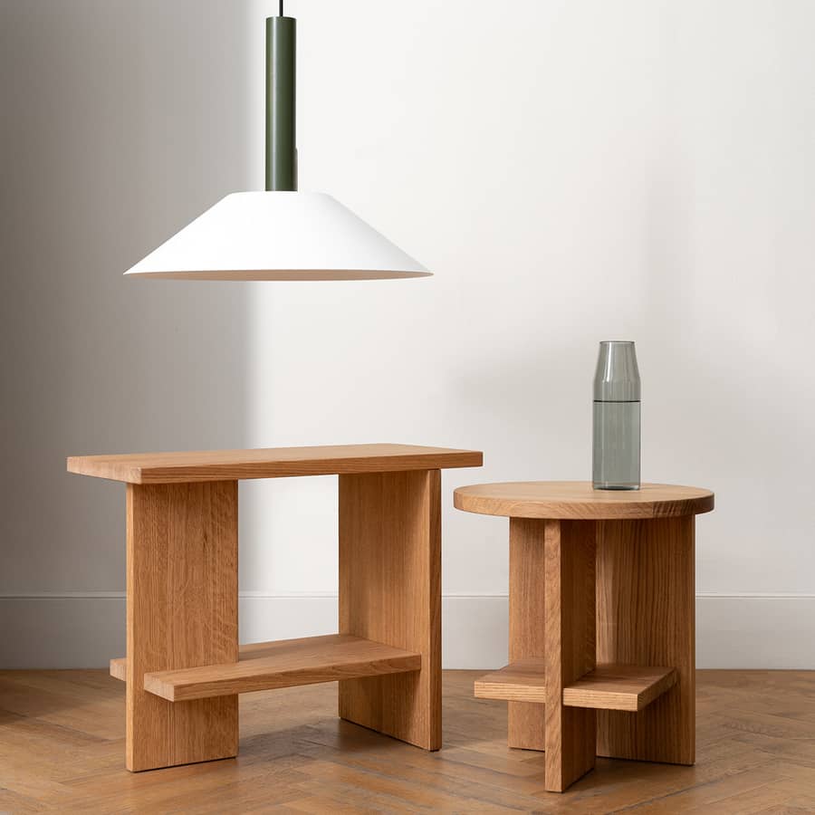 “Il tavolino scandinavo Tee ha una storia molto particolare. In origine era un pezzo unico, realizzato a mano in rovere massiccio per un amico. Un giorno, Oliver Stratford della rivista Disegno di Londra mi chiese se ne avrei donato uno come premio per un concorso di parole crociate in uno dei loro numeri. Questa proposta mi ha fatto pensare a come ottimizzare la produzione del tavolo e renderlo piatto, per facilitare l “invio al vincitore. È stata anche un” opportunità per esplorare la produzione su piccola scala e prendere in considerazione la distribuzione autoprodotta.